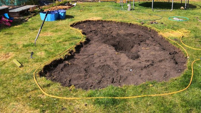 2. Đào hố và tạo hình hồ cá